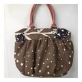 ココアブラウンの綿麻で下はドット柄、上部は花と枝の柄です。