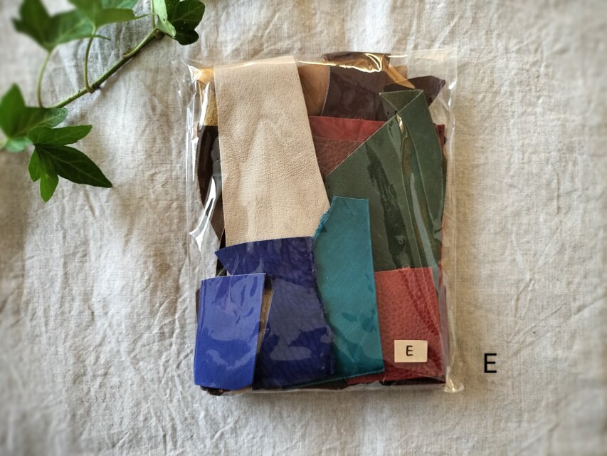 【送料込】革のハギレセットE 少 牛ヌメ革 ピッグスキンレザー カラフル