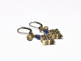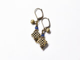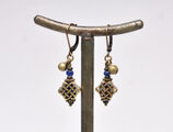 真鍮のエンドレスノットとブルーアンティークビーズ、民族鈴を繋いだピアスです。