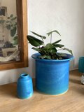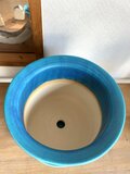マットな質感の綺麗なターコイズブルーの植木鉢です。