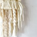 みるく色のふわふわクロスブレッドをメインに、コットンやリネン、極細モヘア、ファンシーヤーン等と組み合わせたタペストリー。