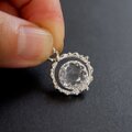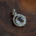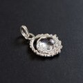 インド北部クル渓谷で産出される透明度の高い良質な水晶を磨いて、飾り枠を使った華やかな雰囲気のペンダントに仕上げました。