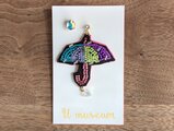 歩くとゆらゆらと楽しく揺れる傘のモチーフが、しとしと雨の日も台風の嵐にも心軽くしてくれます。