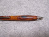 このペンの素材はココボロ特有の赤やオレンジ色の木肌に黒色のラインが入ったサイケデリックな模様が出ています。
