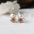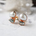 ナチュラルな味わいのある二つの天然石を、銅で有機的につないだピアスです。