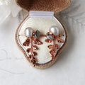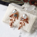 素材である銅は、赤みのある金色があたたかく、使い込む程にアンティークな質感へと変化していきます。天然石のラフな輝きと植物の造形。自然そのままの美しさで耳元を飾るアイテムです。
