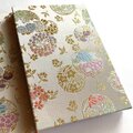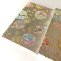 素材は「桐生金襴織物」(化繊)です。比較的丈夫で色褪せしにくい為、美しい絵柄を末永くお楽しみ頂けます。織物(繊維)は摩擦や引っかけに繊細な素材です。御朱印帳袋等を使用して御朱印帳を保護する事で、本作品をより美しい状態で保つ事が出来ます。