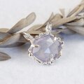 透明感のあるローズクォーツに青みを足したような不思議な色合いが美しいラベンダークォーツを、粒飾りのペンダントに仕上げました。