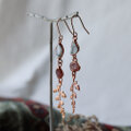 素材である銅は、赤みのある金色があたたかく、使い込む程にアンティークな質感へと変化していきます。動くたび揺れ、自然の美しさで耳元を飾ってくれるアイテムです。
