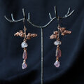 本物の葉っぱから、天然石の雫が滴り落ちるようなピアス。