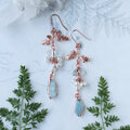 葉っぱから天然石の雫が零れ落ちて揺れるようなピアス。