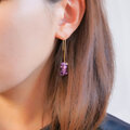 14kgf Amethyst Square Line Pierced Earrings Gift Box