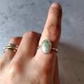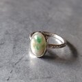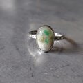 乳白色のクォーツのなかに鮮やかなグリーンのエメラルドが入り込んだエメラルドインクォーツをシルバーリングに仕立てました。
