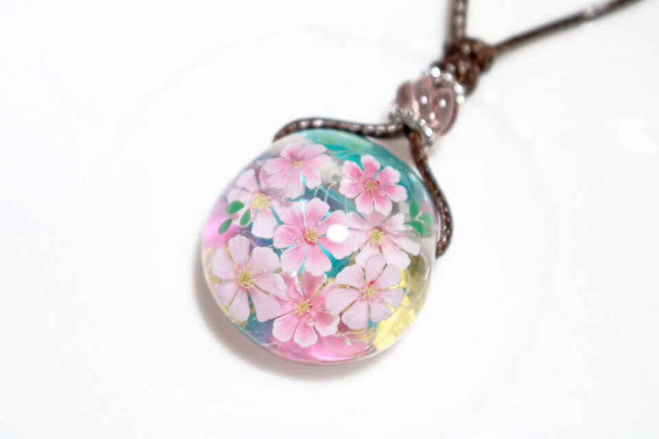 バーナーワークの技法で制作した、手作りのガラスのペンダントです。
