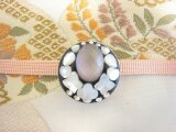 白蝶貝とガラスビーズを配したアールデコ調の帯留です。