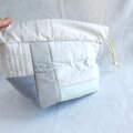 使用材料:キルト芯 ウレタンマット(底)キルト糸 ロー引きひも(巾着ひも)