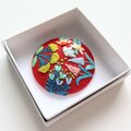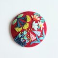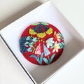サーモンピンクの地に黒い花の刺繍、ありそうでなかったこの色のとりあわせ、すてきなブローチでした。