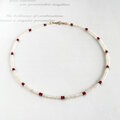 小さな小粒のケシパールとそれに合わせた小さな小粒のルビーを使用して、