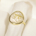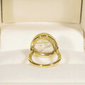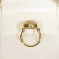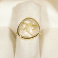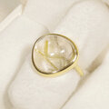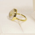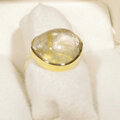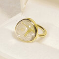 丸みのあるおにぎり型のルチルクォーツをふくりん留めした指輪です。透明感が高く、金色の針が良く見えます。