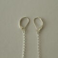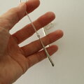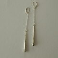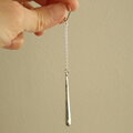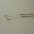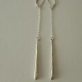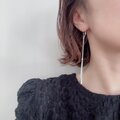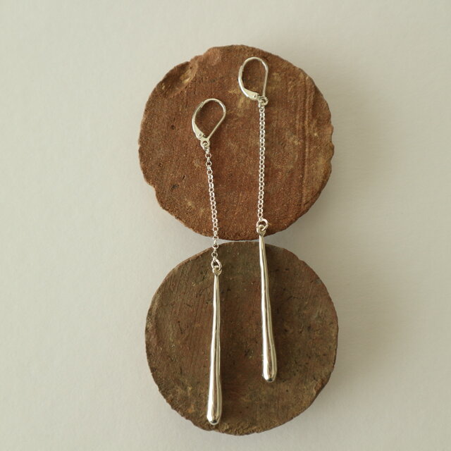 長く細いシルバーの雨の雫が揺れるデザインの耳飾り。