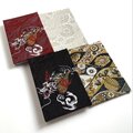 生地の素材は「桐生金襴織物」(化繊)です。比較的丈夫で色褪せしにくい為、美しい織柄を末永くお楽しみ頂けます。織物(繊維)は摩擦や引っかけに繊細な素材です。御朱印帳袋等を使用して御朱印帳を保護する事で、本作品をより美しい状態で保つ事が出来ます。