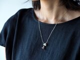 きれいめな印象と原石の荒々しさがマッチした1点モノ・ペンダントです。