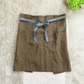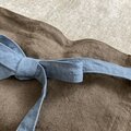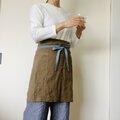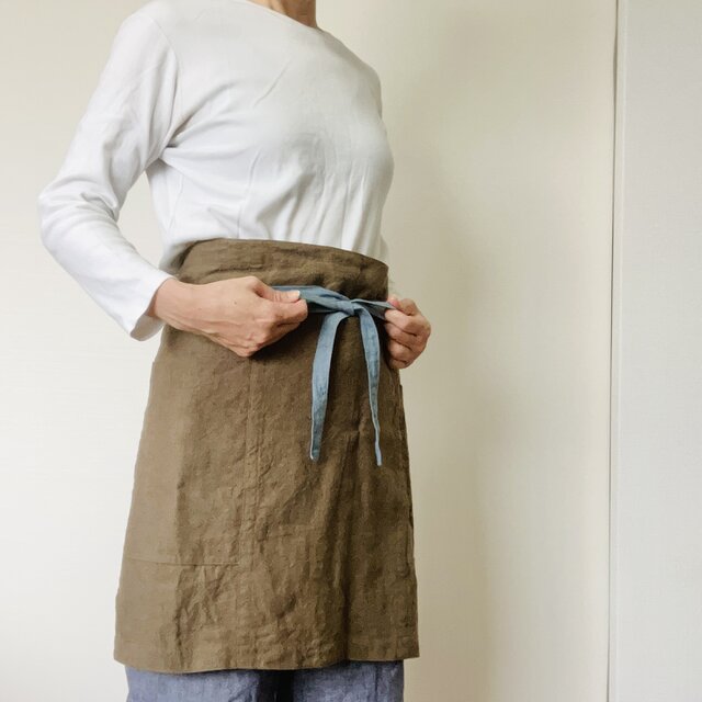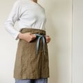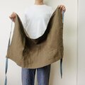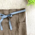 肌馴染みの良いふっくらととろむ厚みのカフェエプロン 腰紐バイカラー ベルギーリネン25番手 モカ×腰紐サックス
