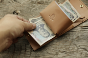 タンニンなめし革を総手縫いで仕立てたコンパクトなのにオールインワンできるさらにお札を折らない手のひらサイズのコンパクトウォレット
