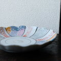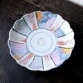 素敵な色味◇瀬戸焼 花文色絵波縁中皿 骨董品 古民家 antiques 大正〜昭和初期 器