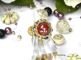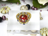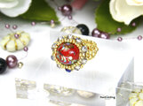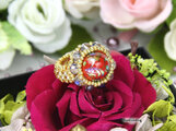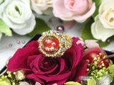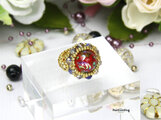 唐草オーロラ転写赤玉リング《ビーズアクセサリー》