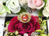 特に屈折率の高いスワロフスキーなどに関しましては、光のあたり加減で、色や表情を変える素材もございます。