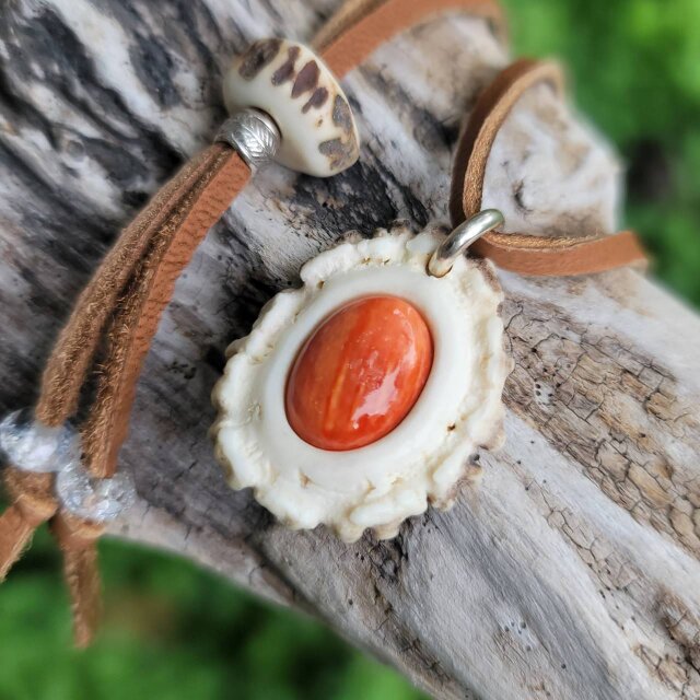 こちらは【鹿の角 スパイニーオイスターシェルのペンダント】になります。