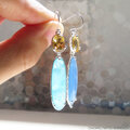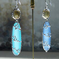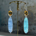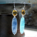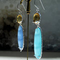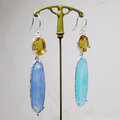 シトリンとカルセドニーを使用したフックタイプのピアス。