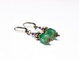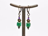 グリーンヴィンテージビーズとぷっくりブラスビーズ、アメジストを繋いだピアスです。