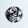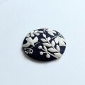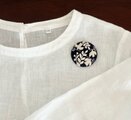 サーモンピンクの地に黒い花の刺繍、ありそうでなかったこの色のとりあわせ、すてきなブローチでした。
