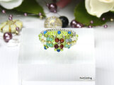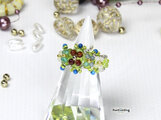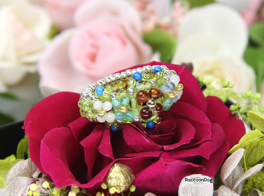 小さな天然石とビーズのflowersリング(天然石/チェコビーズ ビーズリング)《ビーズアクセサリー》