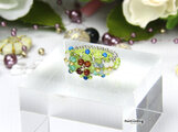 特に屈折率の高いスワロフスキーなどに関しましては、光のあたり加減で、色や表情を変える素材もございます。