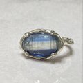 クリア部分が多めのカイヤナイトをテクスチャを付けた枠で留めました