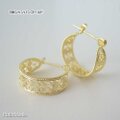 透かしが繊細な銀線細工のレースのフープピアス・ゴールド(ニッケルフリー)(p-11-g)