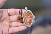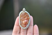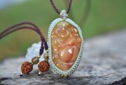 カービング★オレンジアゲート 仏陀さま★マクラメネックレス1229
