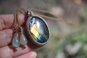 黄金マルチカラー★ラブラドライト マクラメネックレス1237