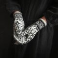 北欧から発送 / 指出しミトン(tvåändsstickning) / Zebror(白×黒)「Zebror」と名付けられた指出しミトンは、立体的な模様がとても美しくうっとりとしてしまいます。履き口には紐状の矢羽根のアクセントがまた、本当に可愛くて…もう〜感動❤️です。こんなにもステキで魅力的なミトンは初めてですね。もう一つは、牛達がのんびりと干し草を食べている様子がなんとも愛らしく、見ているだけでほんわかほのぼのとしてきます。この度も本当に素晴らしいミトンに心より感謝申し上げます。
