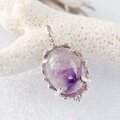 オーバルカボションのインクルージョンクォーツを、石枠に粒飾りをつけたペンダントに仕上げました。