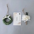 ミニリースとグリーン付ブーケは、白いリボンがかわいいです。