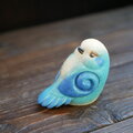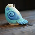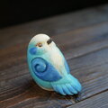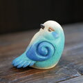 振り返り見上げることりの置物です。陶土の塊から形を引き出し細部まで彫り込みました。羽の渦巻きは蓄えているエネルギーのイメージです。