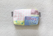 布つなぎと刺繍、モチーフ(たまにビンテージ)のマチ付きスクエアポーチです。