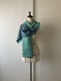 柔らかいちりめんで、表は青系の更紗柄、裏は鮮やかなグリーン系のグラデーション。