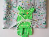 ねこちゃんの目とひげ、ひもとビーズは別素材です