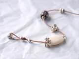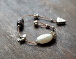 大粒オパール・ファンシービーズ、シルバービーズを繋いだ紐ブレスレット