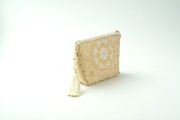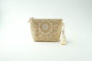 西陣織 服部織物 亀甲華紋織出しのゴールドのシルク帯を使ったミニポーチです。